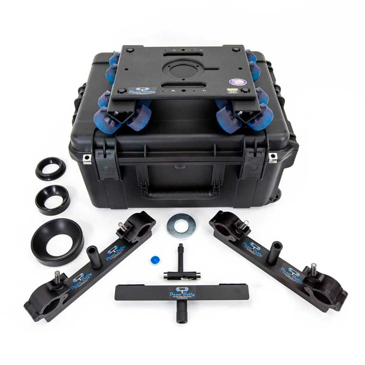 Dana Dolly Portable Dolly Systemは、アルミニウム構造で迅速かつ組立も容易なポータブルドリーシステムです。通常のミニスライダーに比べ、重量のあるカメラを搭載することができ、75φ、100φ、150φの雲台の取付けが可能です。