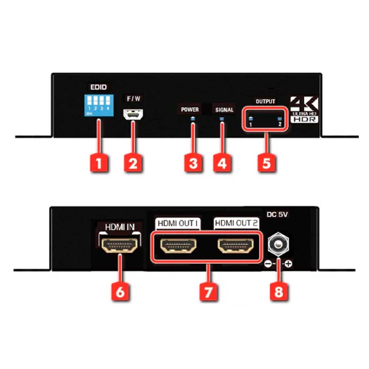 AIM HDMIスプリッター AVS2-18G102は、1入力2分配、4K/60p(18Gbps)対応のHDMIスプリッター(分配器)です。Full 4K(UHD)に対応しており、「HDMI2.0a」機器とのご利用が可能です。