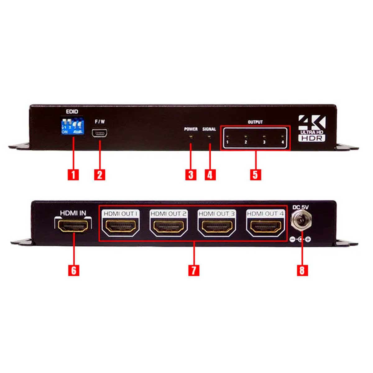 AIM HDMIスプリッター AVS2-18G104は、1入力4分配、4K/60p(18Gbps)対応のHDMIスプリッター(分配器)です。Full 4K(UHD)に対応しており、「HDMI2.0a」機器とのご利用が可能です。