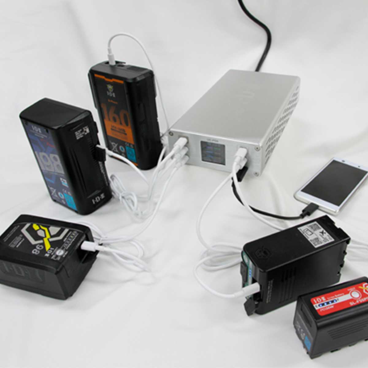 IDX UC-PD6は、USB PD規格に対応したUSB Type-Cポートを6系統搭載した急速充電器です。トータルで最大440Wの高出力に対応し、USB PD対応のIDXバッテリーを最大6本まで同時に充電することができます。