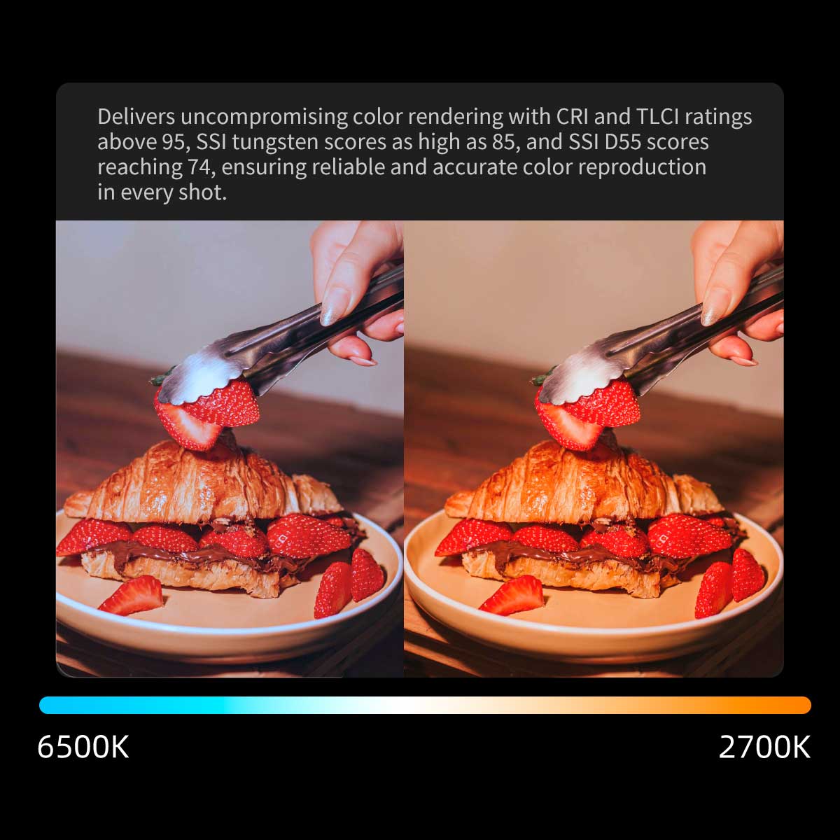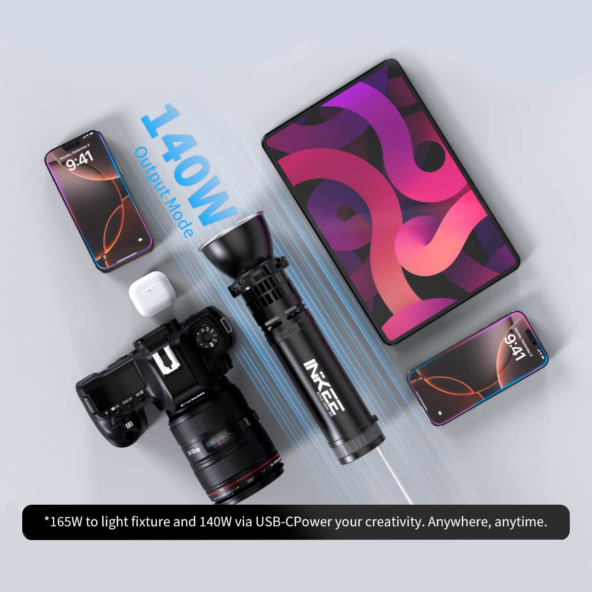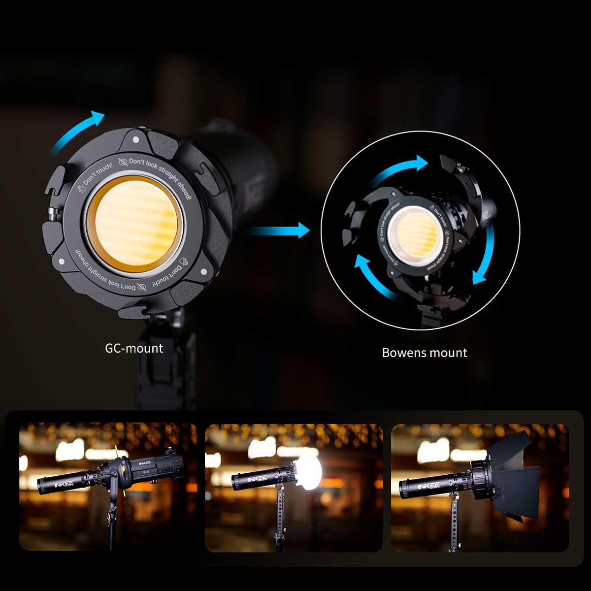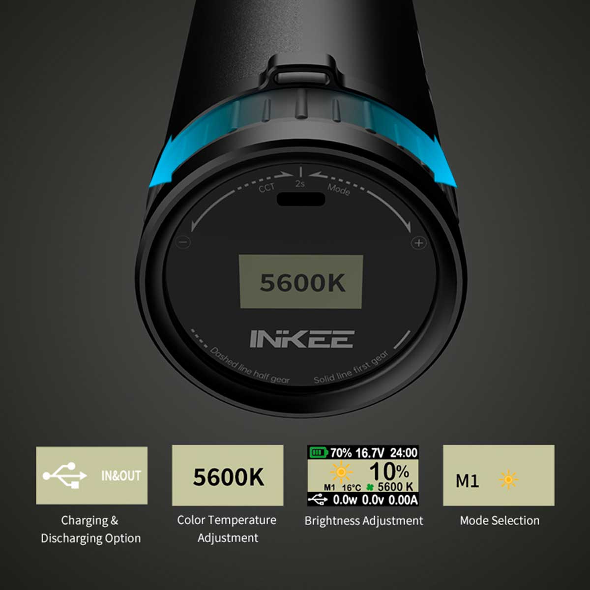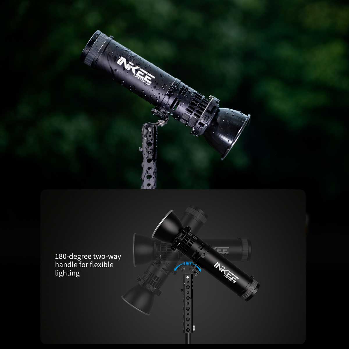 INKEE GOLD CROW 150は、32mmのCOBパッケージを採用した高密度二色ライトエンジンを搭載。CCTは2700Kから6500Kまで対応しており、全範囲で最大150Wの連続出力を維持します。150段階の精密調光により、最も厳しい制作環境に合わせた動的制御が可能です。シグネチャー防水・防塵のマグネティックコントロールリングが、新しいタッチボタンでより簡単で直感的な調整ができるように強化されました。