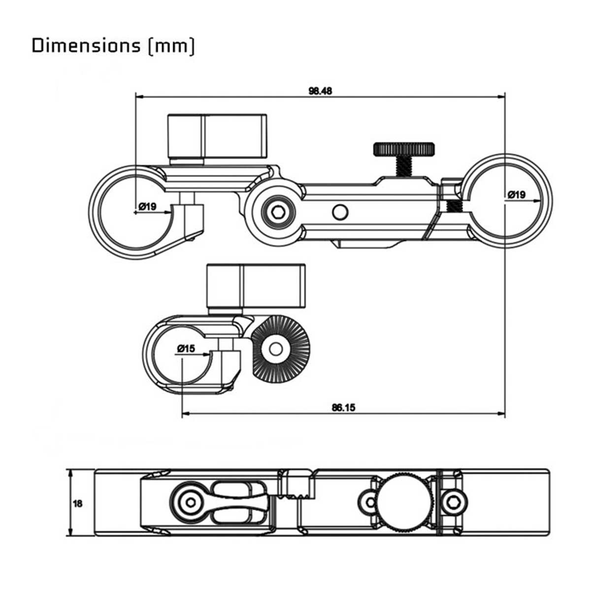 15mmロッドでも 19mmロッドでも使用できるセットです。