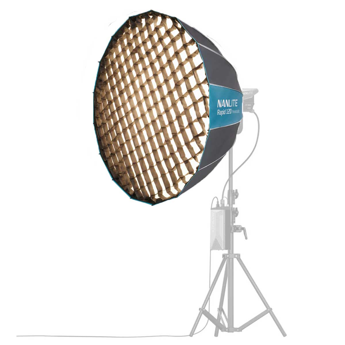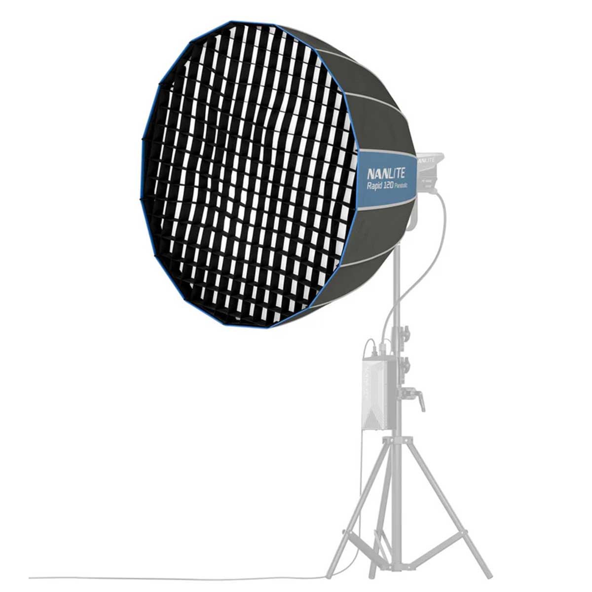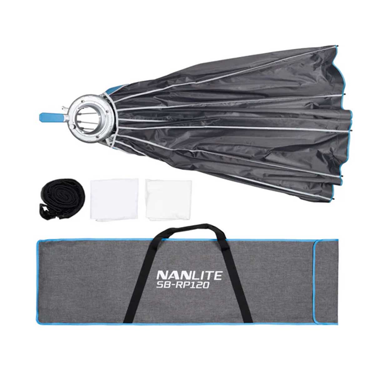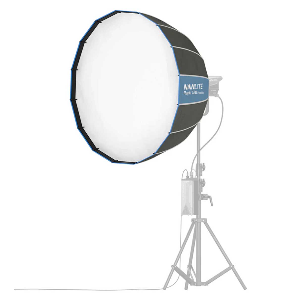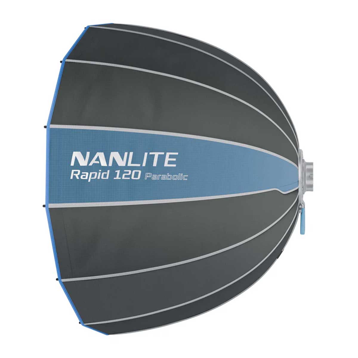NANLITE パラボリックソフトボックス 120は、革新的なクイックリリース機構を搭載した直径120cmのワンタッチ式ソフトボックスです。ボーエンズマウントLEDライトに装着することで、柔らかで広範囲な光を作り出します。