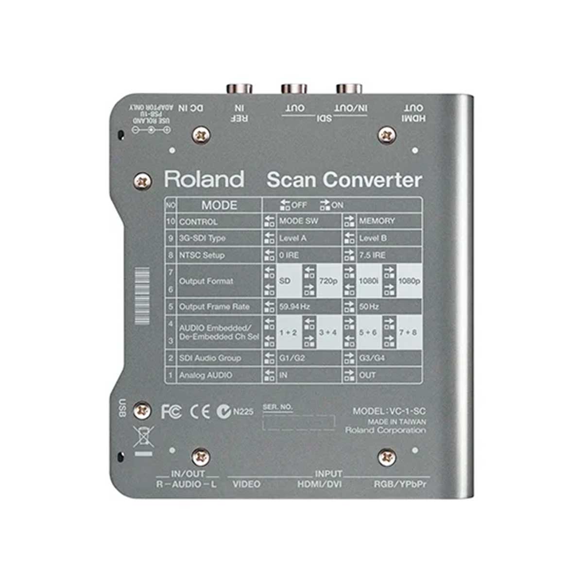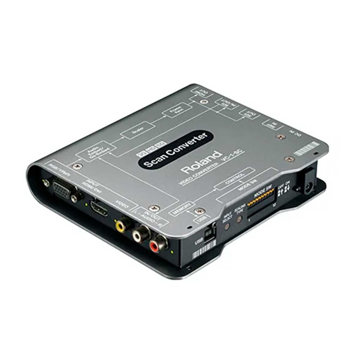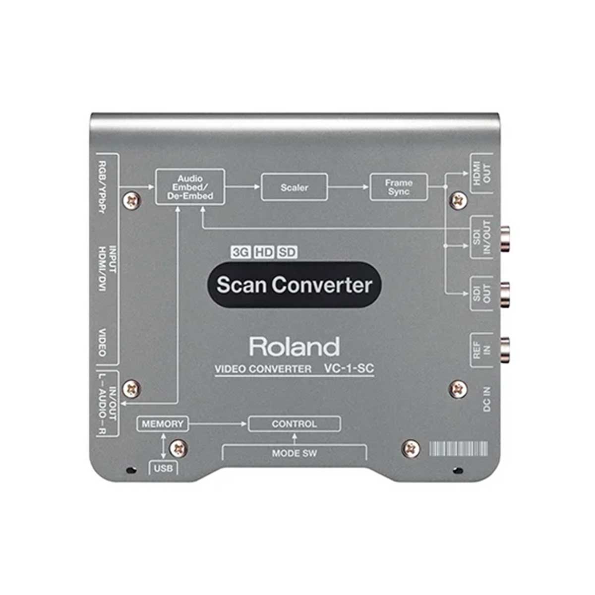Roland VC-1-SCは、アップ/ダウン/クロス/スキャン・コンバーターです。SDIやHDMIのデジタル信号、RGBやコンポートネント、コンポジットといったアナログ信号を任意のビデオ・フォーマットに変換し、SDIとHDMIから出力します。多機能なスケーラー搭載で、アップ/ダウン/クロス/スキャン・コンバート、フレームレート、I/P、アスペクトの各種変更が可能です。