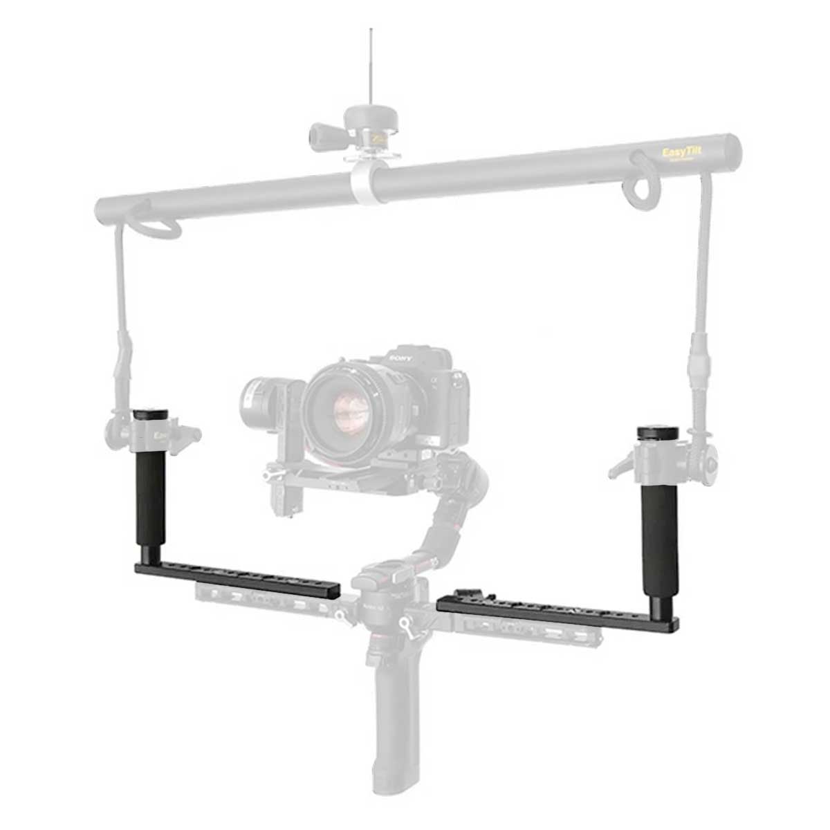 三和 デュアルハンドルサポートを使えば、DJI RS2RS3 PROを両手で握れるデュアルハンドグリップ仕様にできます。さらに、EasyRig Stabil イージーチルトを使ってオペレートする際に、上手くイージーチルトを使えるよう操作性を向上してくれます。