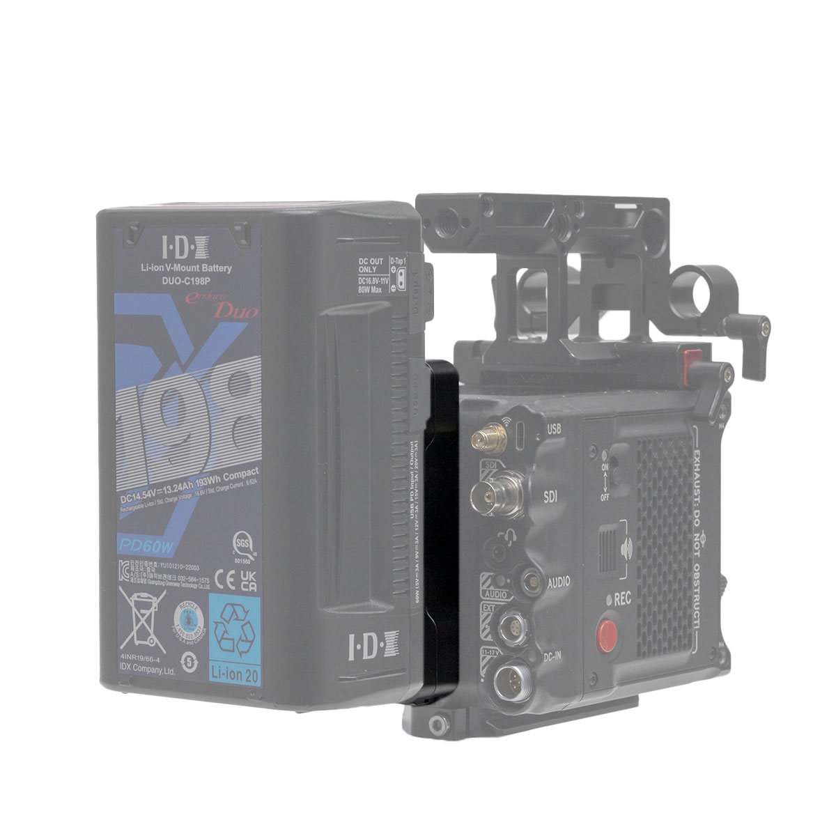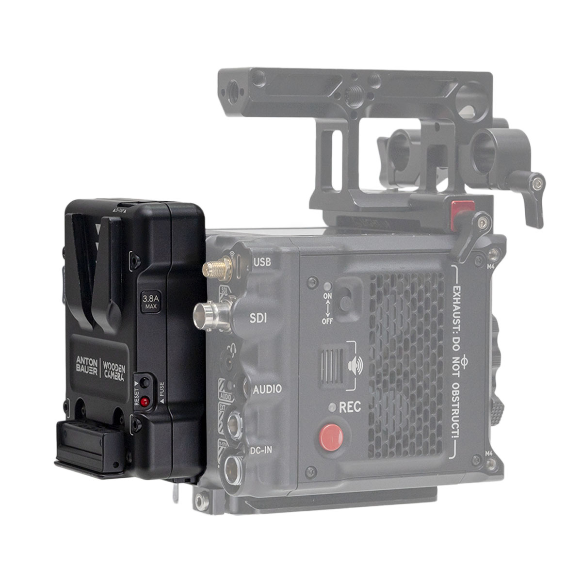 Wooden Camera Micro Battery Plate Adapterは、RED Komodo-XやV-Rapterのカメラで大きいサイズのV-mountバッテリーを使用する際に使用します。